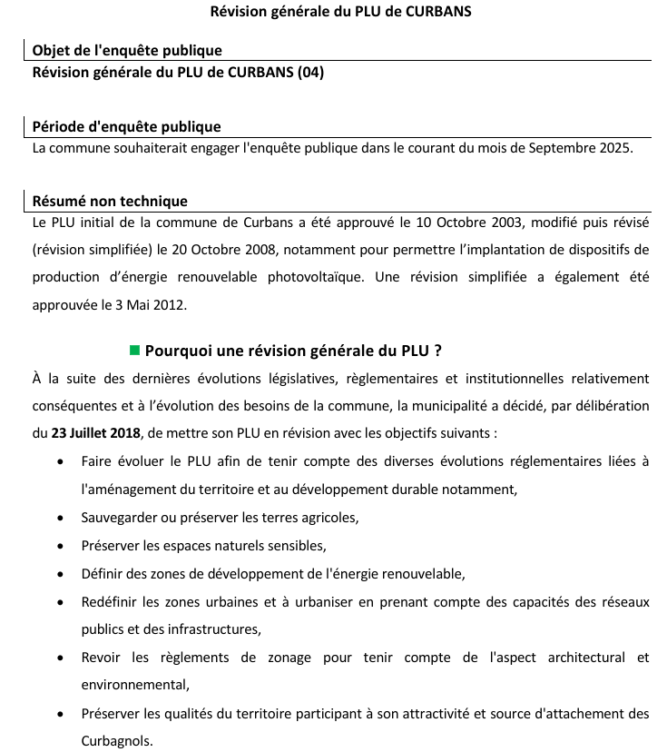 Commune de Curbans > Mairie > Urbanisme > Révision du PLU